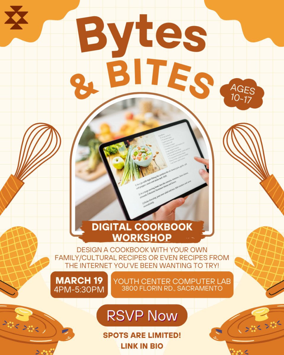 Love food? Love tech? If you’re a youth age 10-17, you’re invited to our Digital Cookbook Making Workshop where you will explore culture through food, learn how to use design technology, and transform your favorite recipes into a digital cookbook! After the workshop, you’ll be able to continue building your cookbook on your own, with the option to print what you’ve created.