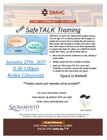SafeTALK is a three hour training that prepares anyone
